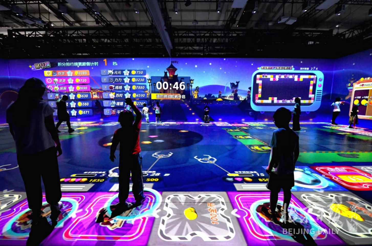 最受小朋友喜欢的元宇宙游戏馆将2450平方米空间分为运动会、游乐场、快乐城堡、舞动星辰及涂鸦五个区域,通过创建多维度感知空间,实现完全沉浸和互动体验。相比去年的《猫咪大作战》,今年小朋友在这里能有更多互动,可以尝试体验《击剑》、《猜套娃》、《棋盘》、《跑酷单人》、《游泳单人》、《羽毛球》等10款游戏,特别是在人机语言交互、数字人技术应用、青少年专业运动训练体验等方面带来更多应用场景。