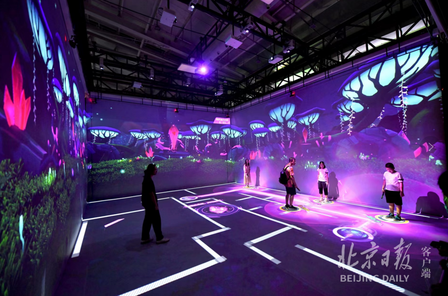 今年服贸会上,改造升级后的元宇宙体验中心首次全面开放。因为炫酷的新体验,在公众开放日第一天就成了网红打卡地,一方面面向青少年打造模拟地震、暴风雨等各类安全教育场景,另一方面设置3D数字艺术馆、元宇宙游戏馆等让观众沉浸式体验元宇宙。