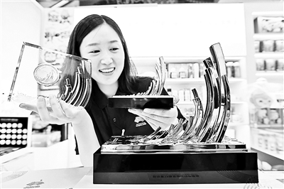 杭州亚运会开幕式火炬装置造型的纪念套装25日在工美大厦发售。摄影/本报记者 付丁