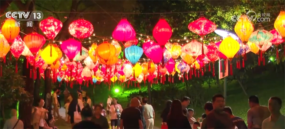 这两天,广州白云山被璀璨的灯光装点得如诗如画,传统岭南花灯和现代灯艺结合,装点出节日喜庆气氛。这个巨大的“森林月球”描绘出花好月圆的美好意境;300个灯笼组成了50米的灯笼长廊,288个羊皮纸灯笼组装的灯谜墙吸引了众多游客留连忘返。
