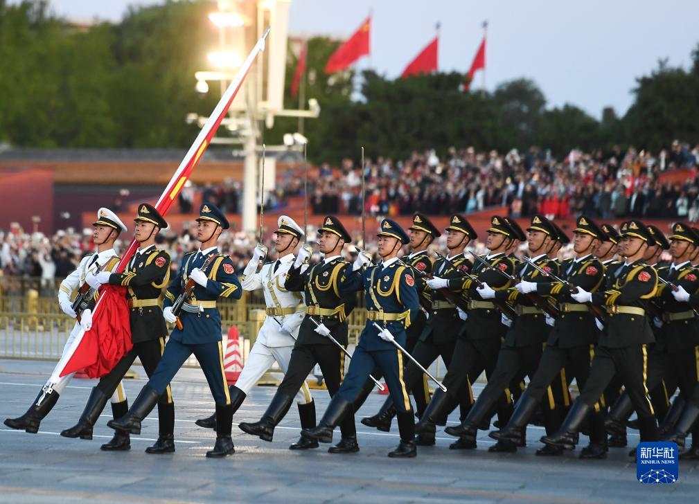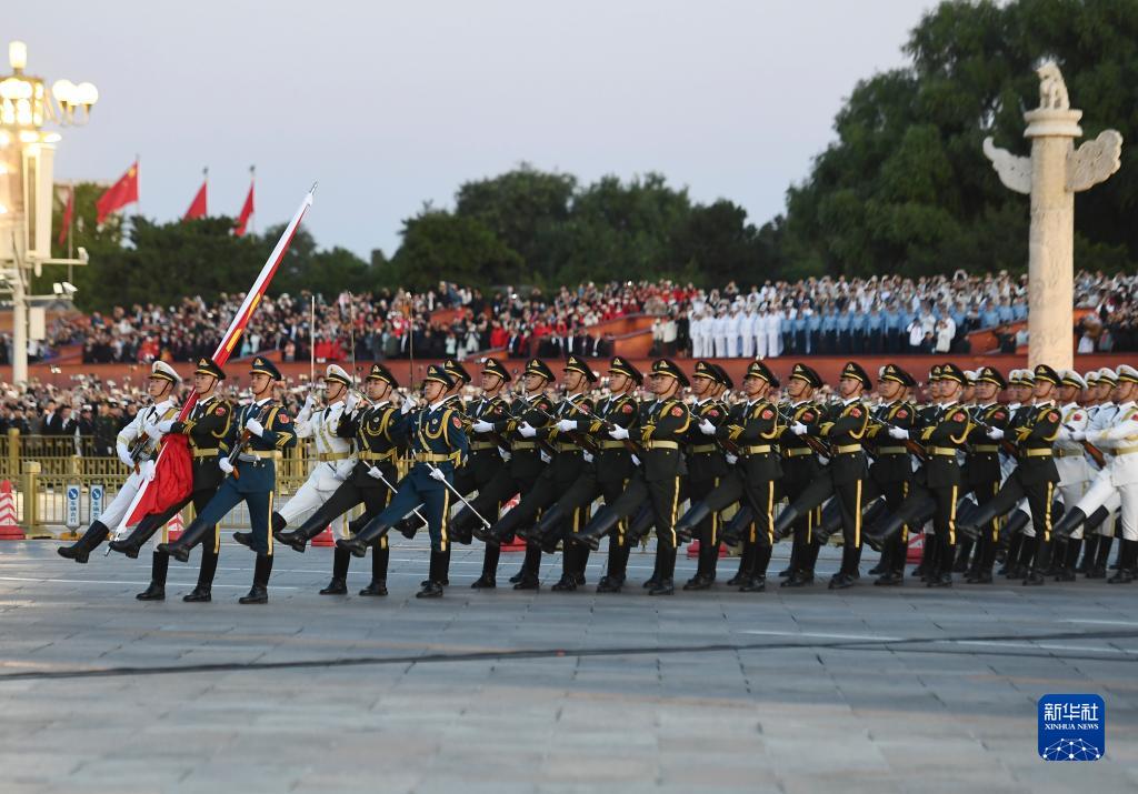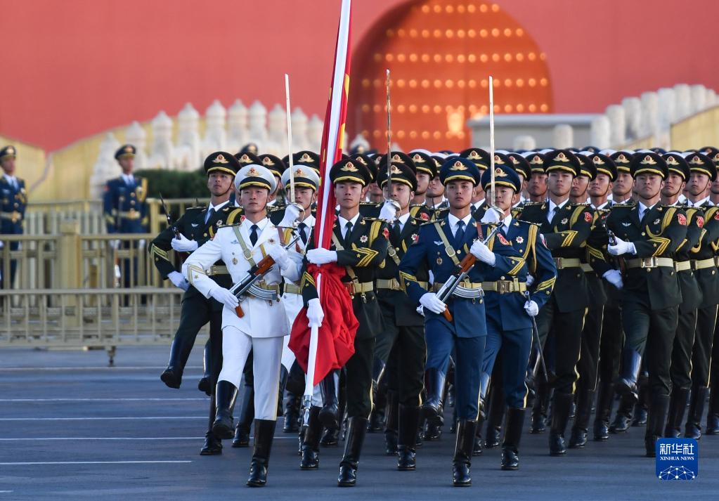 10月1日清晨,隆重的升国旗仪式在北京天安门广场举行,庆祝中华人民共和国成立74周年。新华社记者 张晨霖 摄
