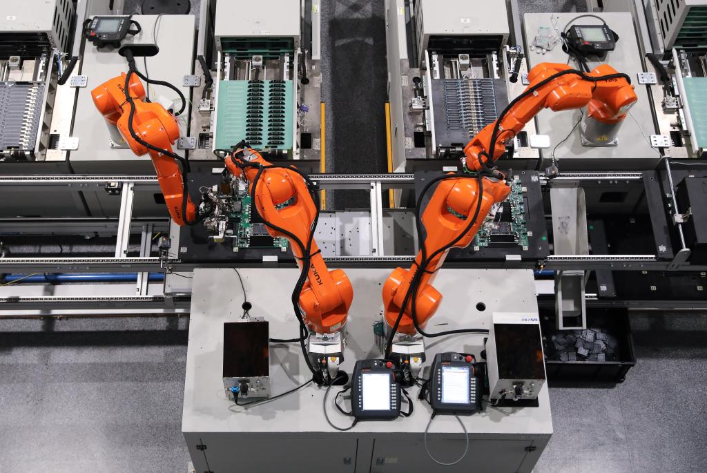 5月22日,在杭州紫光恒越(杭州)技术有限公司“未来工厂”,机械臂在工作中。新华社记者 杜潇逸 摄