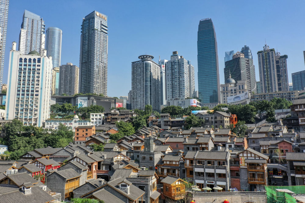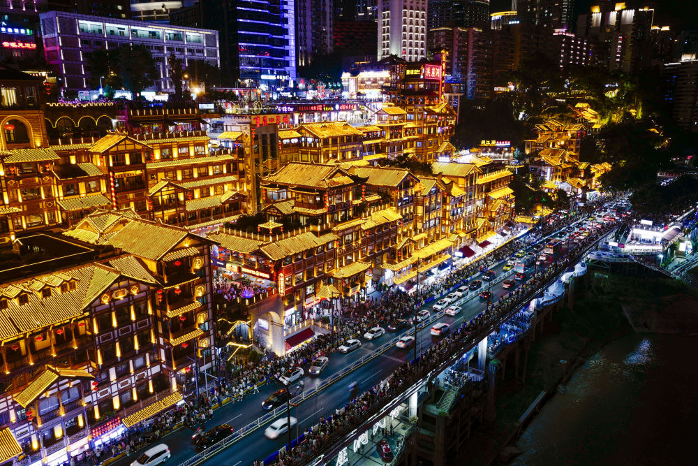 ↑重庆解放碑商业区(上)与十八梯传统风貌区