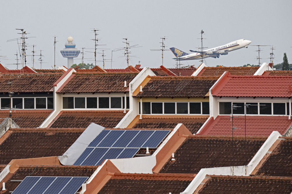 ↑一架新加坡航空公司运输机从新加坡樟宜机场起飞。新加坡樟宜机场是大型国际枢纽机场,年客容量可达8500万,年货邮吞吐量可超过200万吨。