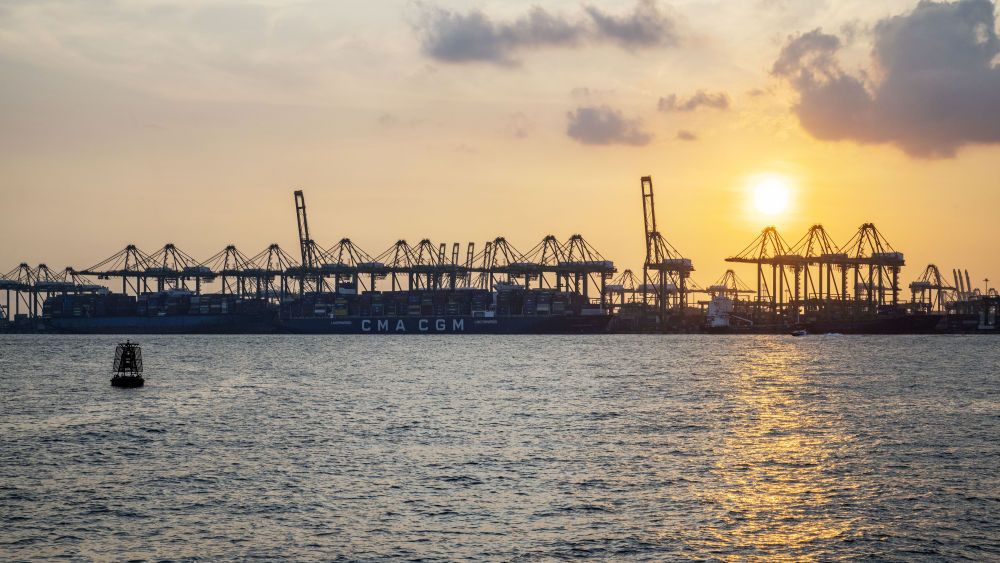 ↑货轮停泊在新加坡巴西班让集装箱码头装卸货物。位于马六甲海峡东南侧的新加坡港,扼太平洋、印度洋航运要道,是东西方海洋贸易的必经之地、世界最大的集装箱港口之一,也是“21世纪海上丝绸之路”的一处重要支点。