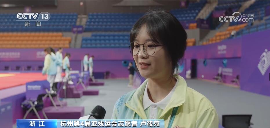 杭州第4届亚残运会志愿者 卢筱苑:经过前期的线上培训以及线下的实操训练,我们已经掌握了如何更好地服务残障人士,我们需要更加熟悉场馆的环境,为他们提供更加准确的指引,提供更加细微周到的服务。