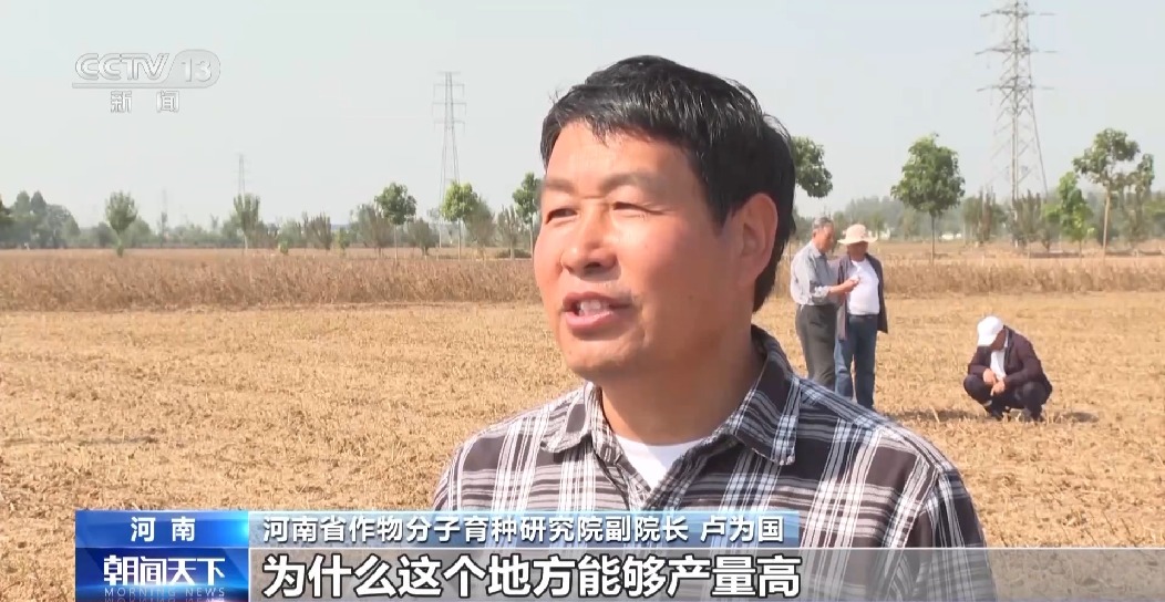 河南省作物分子育种研究院副院长 卢为国:为什么这个地方能够产量高,一是我们选择了高产的品种,二是选择了免耕覆秸精量播种技术,三是“症青”防控技术和科学施肥技术。品种和技术结合,就达到了一个比较理想的产量水平。