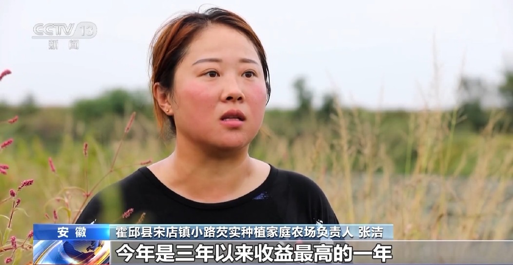 安徽省霍邱县宋店镇小路芡实种植家庭农场负责人 张洁:今年是在这三年来收益最高的一年,平均一亩地毛利是4000元左右。带动200户家庭,一个人收入达到6000到8000元。
