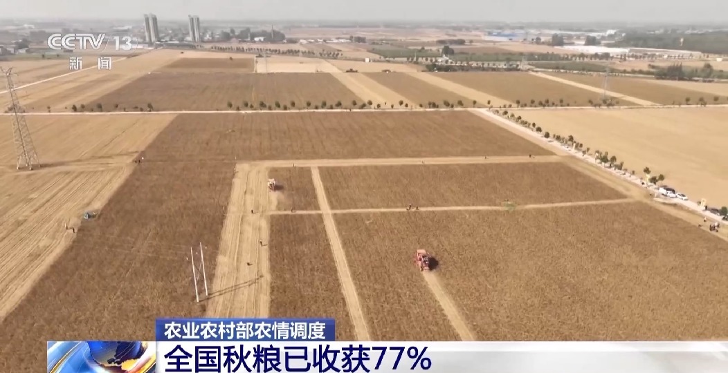 农业农村部最新农情调度显示,全国秋粮已收获77%,其中,大豆收获接近尾声,玉米收获近八成,中稻过八成。