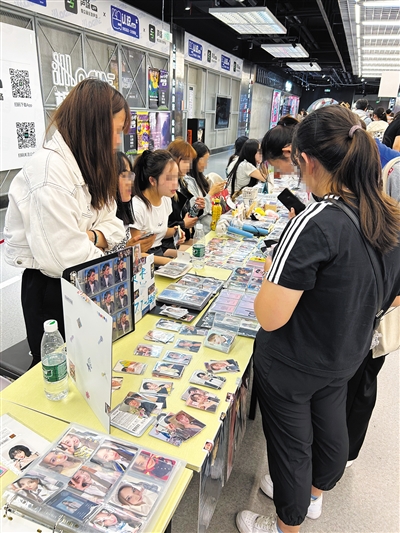 北京市海淀区某商场平日客流量并不多,但十一假期这几天是例外,因为三楼区域正在举办限时“小卡集市”。和一二楼的冷清不同,站在楼梯上就可以听到三楼响亮的音乐声和充满了追星专属名词的热闹讨论。