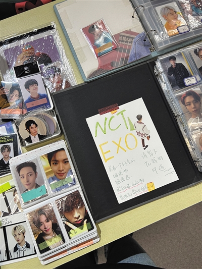 每晚睡前,她都会翻开粉色卡册,把自己精心收集的几十张小卡都欣赏一遍。这是一个由十几名成员组成的韩国男团,明星本人的自拍照片被固定在长8.5厘米、宽5.5厘米的卡片里,包裹着一层薄膜的硬卡纸,微微反光。
