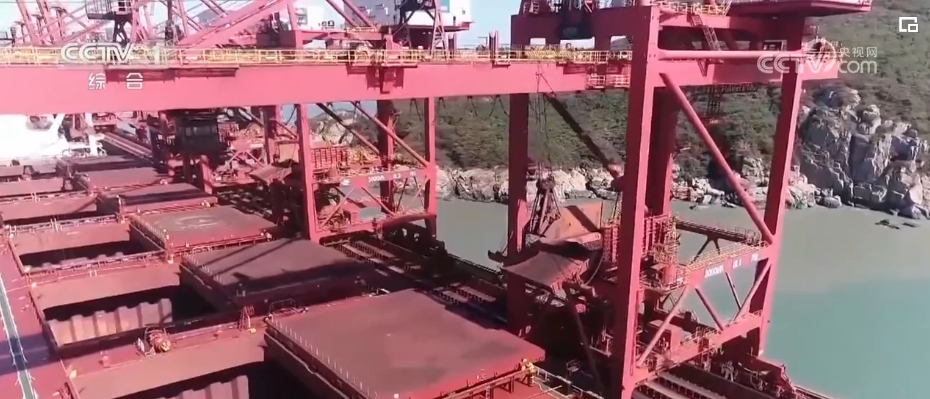 不仅出口商品结构在发生变化,进口的规模也在逐季度走高。在宁波舟山港鼠浪湖矿石中转码头,一个个抓斗正忙着从巨轮上接卸矿石。2023年以来,40万吨矿船是这里的常客。前三季度,宁波舟山港铁矿石的接卸量超过了1亿吨。