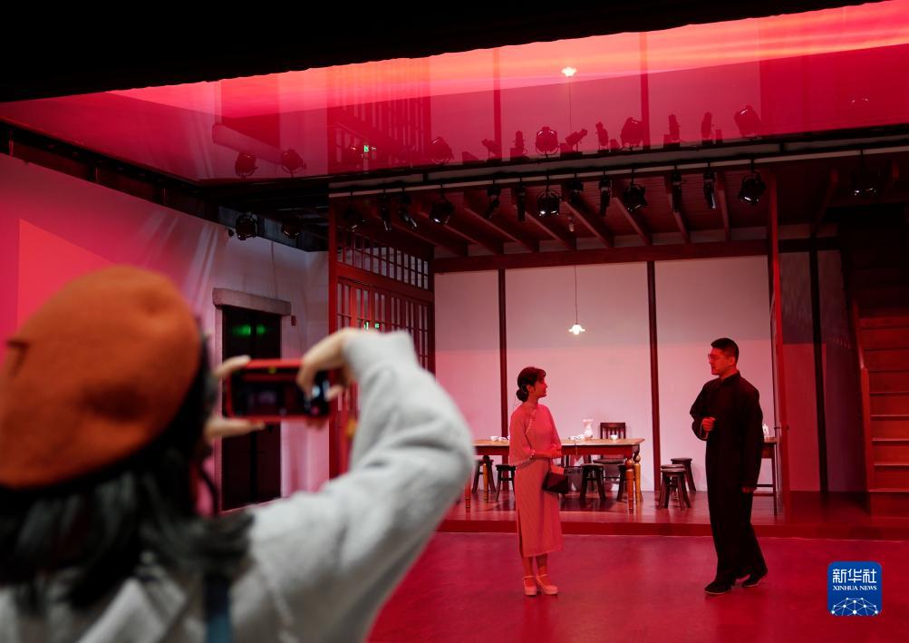 观众在中共一大纪念馆观看情景党课《开天辟地》(2022年2月1日摄)。纪念馆挖掘对中国共产党成立有重大意义的场景、故事,以新颖的形式阐释出来,让参观者对相关历史有更全面的了解。