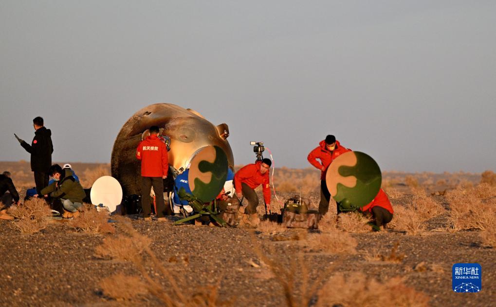 10月31日,神舟十六号载人飞船返回舱在东风着陆场成功着陆。新华社记者 李志鹏 摄