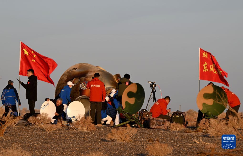 10月31日,神舟十六号载人飞船返回舱在东风着陆场成功着陆。新华社记者 任军川 摄