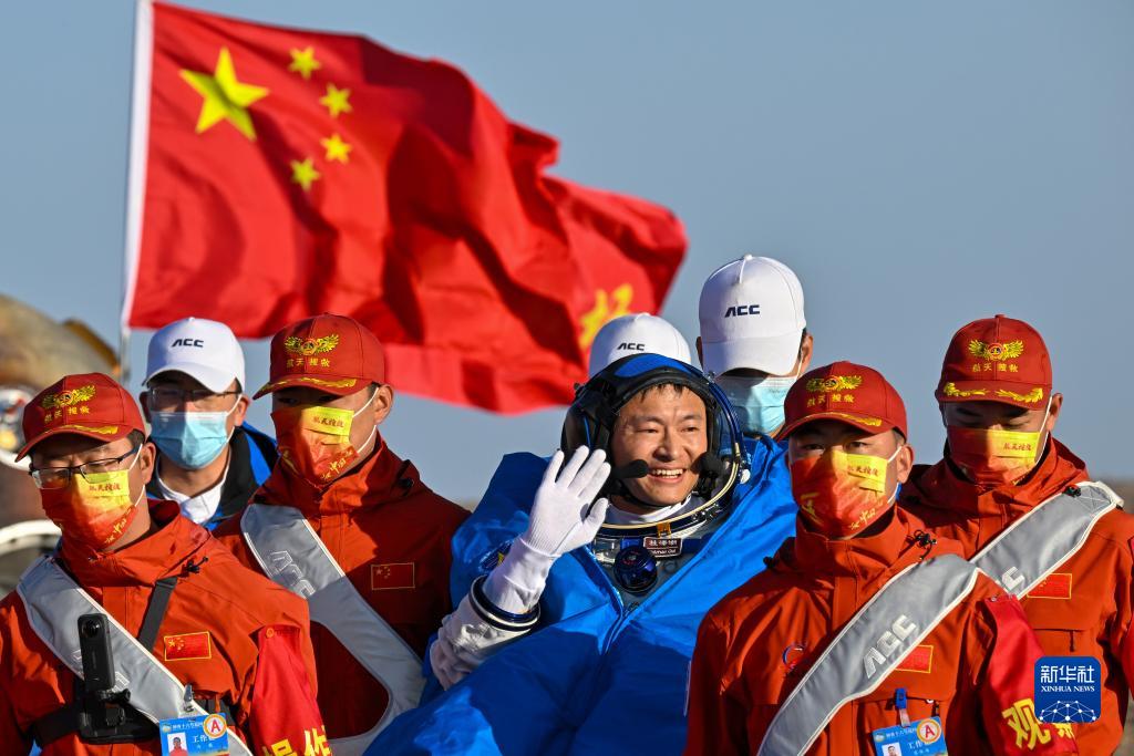 10月31日,神舟十六号载人飞船返回舱在东风着陆场成功着陆。这是航天员朱杨柱安全顺利出舱。新华社记者 李志鹏 摄