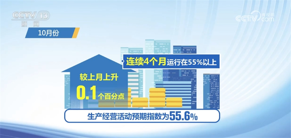 专家表示,10月份尽管经济运行短期有所波动,但是经济平稳向好的基本面没有变化,企业对后市预期也保持乐观。10月份生产经营活动预期指数为55.6%,较上月上升0.1个百分点,连续4个月运行在55%以上。