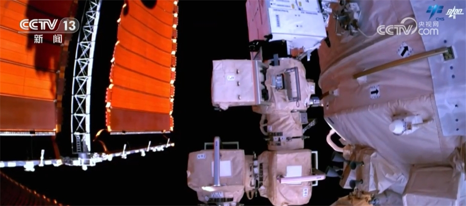 7月20日,神舟十六号航天员乘组密切协同,在空间站机械臂支持下,圆满完成出舱活动。出舱期间,完成了核心舱全景相机B在轨支架安装及抬升、梦天舱全景相机A和B解锁及抬升等任务。
