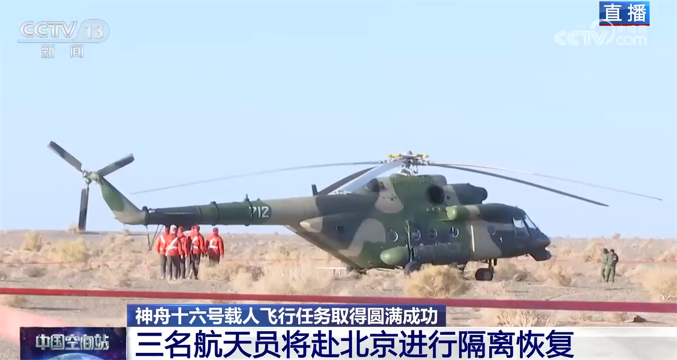 刚刚我们了解到,再过一个小时,三名航天员就要搭乘直升机飞往附近的专用机场,再换乘任务机飞往北京。抵达北京后,三名航天员就要进入隔离恢复期,进行全面的医学检查和健康评估,我们也希望后续三名航天员的恢复可以一切顺利。