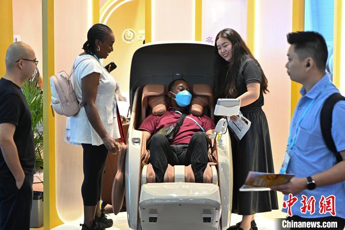在医药保健品及医疗器械展区,在山东一家按摩椅生产商的展位上,一款外观设计感强的按摩椅吸引境外采购商注意。“这是我们今年的新品,较市面上其他产品,此款按摩椅具有4D双机芯,相当于有两个人同时进行按摩,还具有机芯加热功能,能更好地舒缓消费者全身压力。”该公司品牌经理曹丽莉表示,凭借着技术优势和外观优势,该公司为国际大公司的按摩椅长期供应配件,产品销往美国、德国、日本等30多个国家和地区。