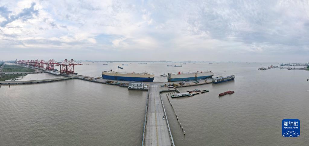 这是上海外高桥海通汽车码头(7月9日摄,无人机全景照片)。