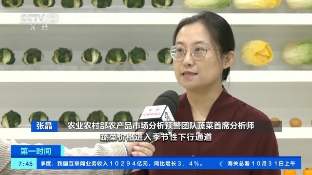 农业农村部农产品市场分析预警团队蔬菜首席分析师 张晶:市场供应逐步转为秋冬模式,北方设施蔬菜产区上市量增加,由于设施生产成本高于露地蔬菜,预计后期蔬菜价格下行空间有限。