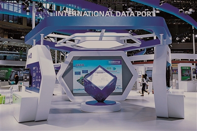 第六届中国国际进口博览会将于11月5日至10日在上海举办。目前,国家会展中心(上海)内部布展工作已进入收尾阶段。图为11月2日在技术装备展区临港展示区拍摄的国际数据经济产业园展台。文并摄/新华社