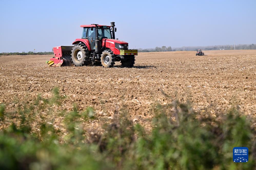11月2日,在合肥市蜀山区小庙镇,农民驾驶农机在田间播种小麦。新华社记者 周牧 摄