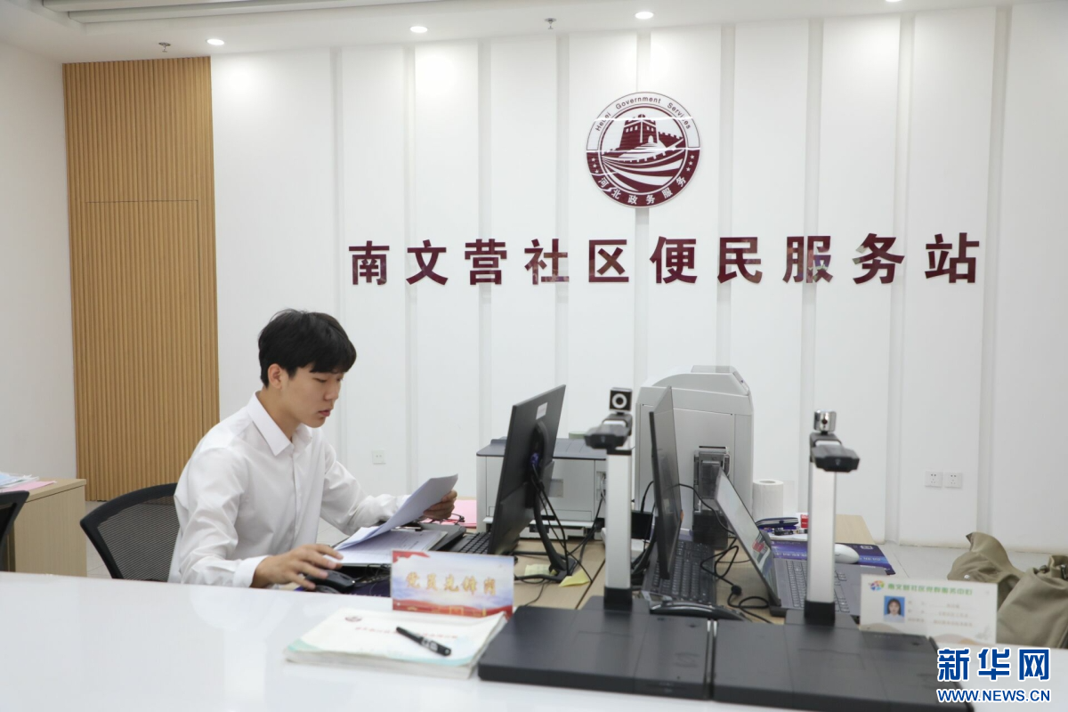 在南文营社区便民服务站,工作人员正在办理业务。新华网 王立鹏摄
