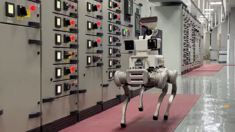 机器狗的鼻子是3D导航激光雷达,嘴巴是避障传感器,大脑内置了热成像双光谱云台,能进行带电检测、红外测温、有害气体检测等诸多任务。设定好路线后,还能对配电房内1260个巡视点进行巡视。
