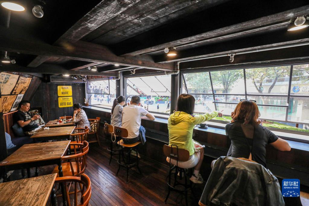 11月3日,顾客在武康大楼的一家咖啡馆休憩。