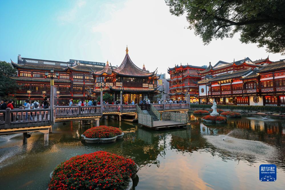11月3日,游客在上海豫园的湖心亭参观。