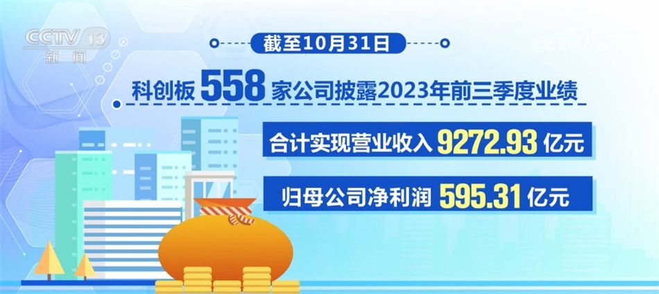 上海证券交易所数据显示,截至10月31日,科创板558家公司披露2023年前三季度业绩,合计实现营业收入9272.93亿元,归母公司净利润595.31亿元。具体来看,超六成公司实现营业收入同比增长,其中有60家公司营业收入规模增长同比超过50%;净利润方面,超七成公司实现盈利,228家公司实现净利润同比增长,其中有100家公司净利润规模增长同比超50%。此外,科创板公司前三季度毛利率平均达到42%,大幅领先于其他板块。