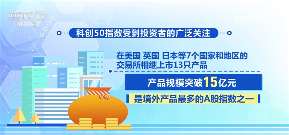 与此同时,科创50指数受到投资者的广泛关注,在美国、英国、日本等7个国家和地区的交易所相继上市13只产品,产品规模突破15亿元,是境外产品最多的A股指数之一。