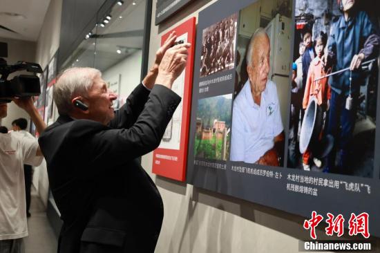 此次访华之旅,飞虎队老兵和亲属们先后走访北京、重庆、昆明、柳州等飞虎队队员曾经战斗过的地方。他们希望以此推动两国更多年轻人了解飞虎队的故事,促进美中两国民众情谊不断加深。图为一名代表团成员用手机记录下珍贵的史料。