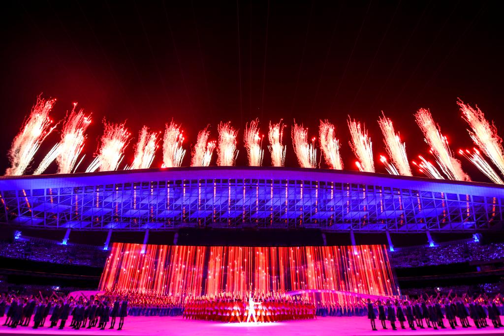 11月5日,第一届全国学生(青年)运动会主火炬点燃。新华社记者 曹祎铭 摄