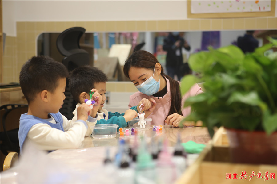 雄安北海幼儿园内,孩子们正在做手工。张晓明/摄