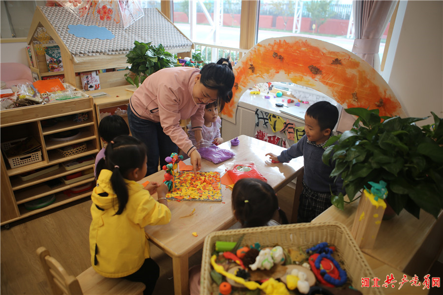 雄安北海幼儿园内,老师正在给孩子们上手工课。张晓明/摄