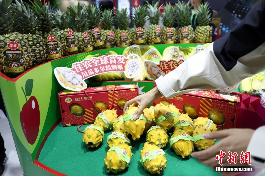 参与过六届进博会的“全勤户”佳农带来的厄瓜多尔麒麟果首次亮相进博会。