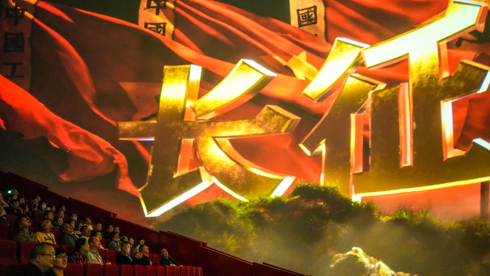 紧邻贵阳龙洞堡国际机场的“红飘带”数字体验馆,AI虚拟交互、全息影像、全维度机械运动、三维声场……数字技术打造逼真的长征场景,让参观者身临其境。