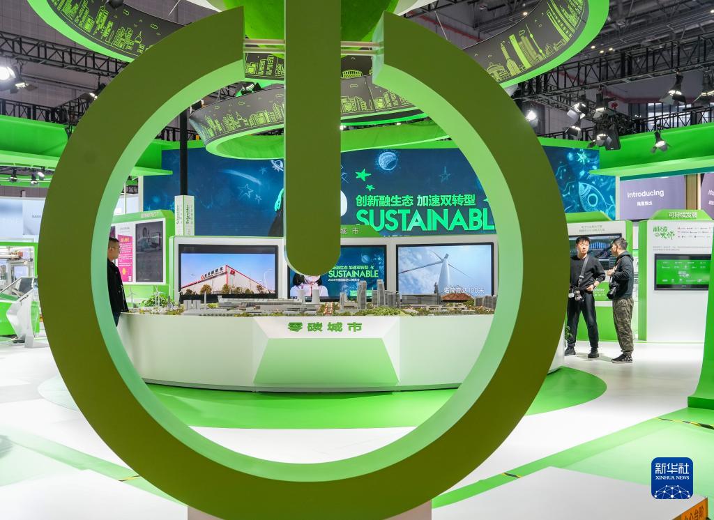 11月9日拍摄的施耐德电气展台展出的“零碳城市”愿景模型。新华社记者 丁汀 摄
