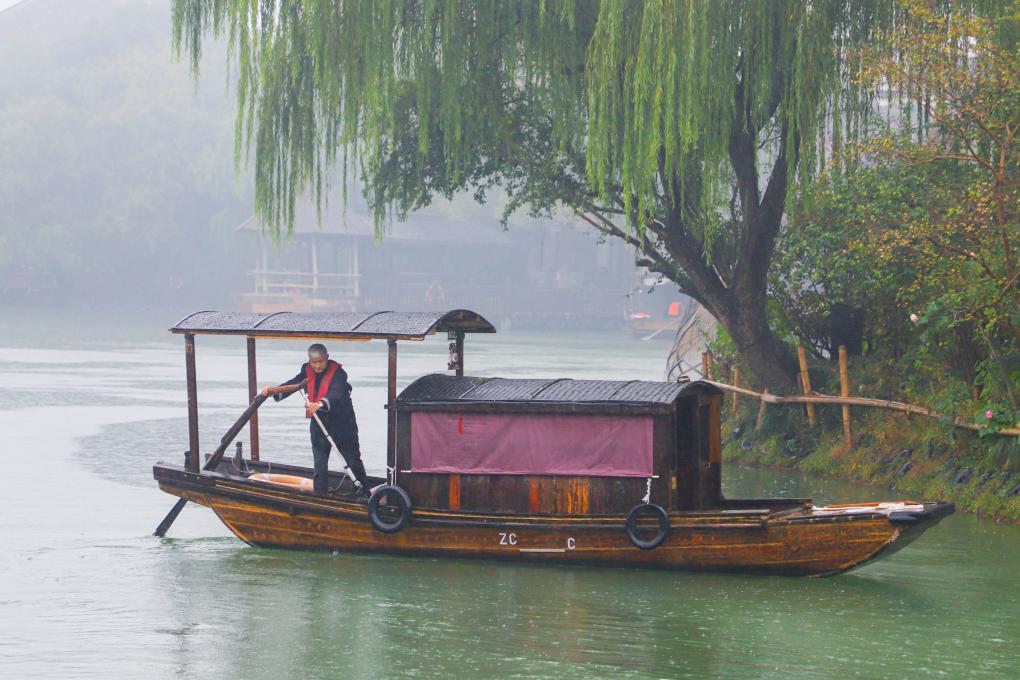一个人、一只桨,潘林金在小桥流水间迎来送往无数游客,在桨声舟影中见证古镇美丽蜕变。“只要身体好,还想继续工作,为更多人撑船,带着他们看乌镇。”潘林金笑着看向远方的河道。