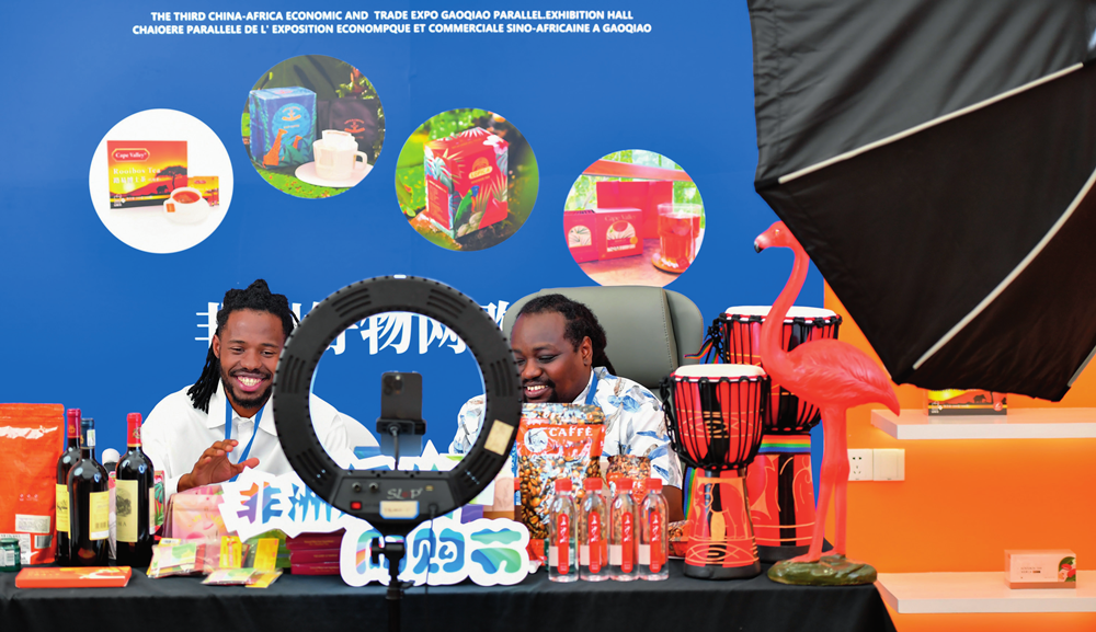 在中非经贸合作促进创新示范园(湖南高桥大市场),来自非洲的主播在直播带货(2023年6月30日摄)。陈泽国摄/本刊