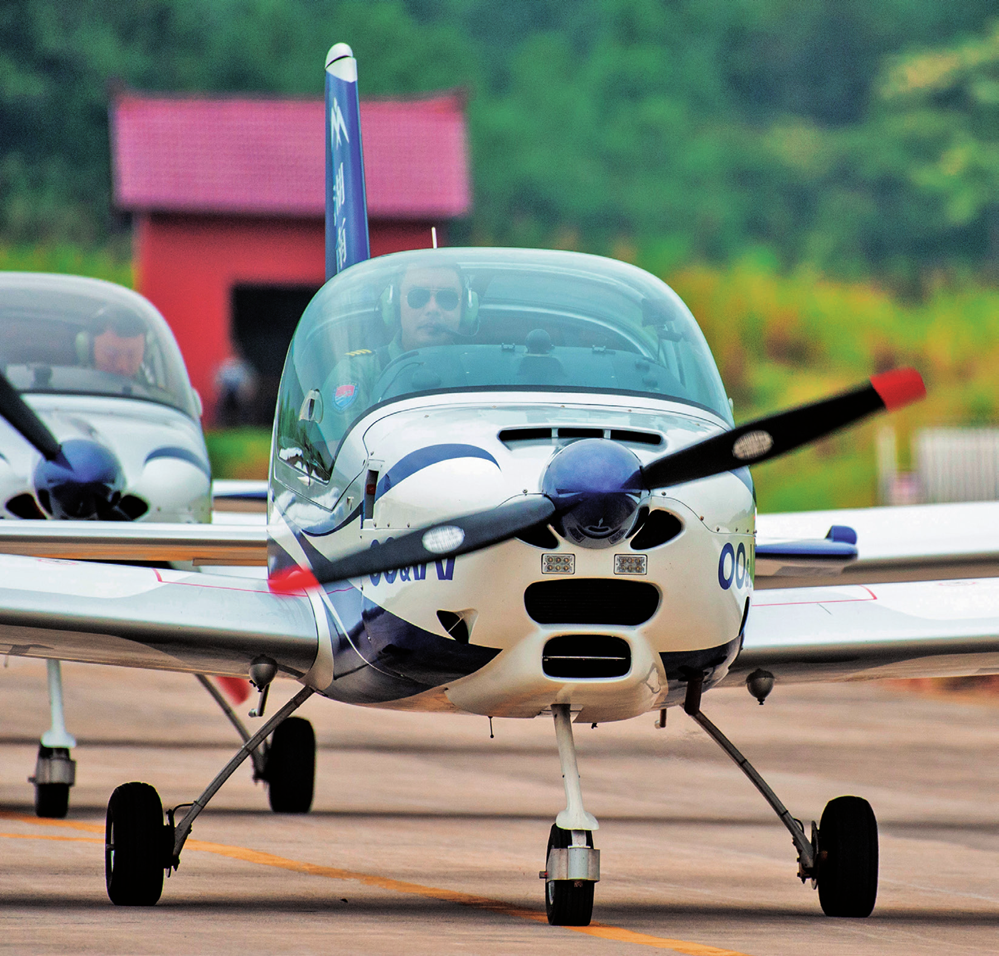在湖南株洲芦淞机场,飞行员驾驶固定翼飞机在表演结束后返回跑道(2023年9月22日摄)。陈思汗摄/本刊