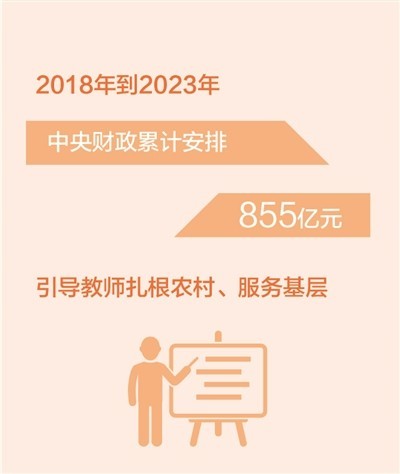 2018年到2023年 中央财政累计安排855亿元引导教师扎根农村、服务基层