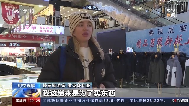 俄罗斯游客 瓦基姆:这是我第一次来中国,看看这里的文化、中国文化,而且我还要去商场给孩子和妻子买礼物,因为在新年前夕,我们俄罗斯每个人都送礼物,而在中国,商品很便宜。