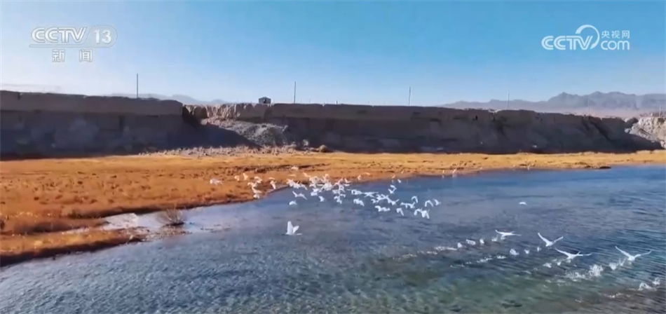 近日,甘肃玉门市昌马镇月亮湾湿地迎来数百只从西伯利亚地区迁徙而来的白鹭、天鹅等候鸟。它们或振翅翱翔,或栖息觅食,呈现出一幅自然和谐的生态图景。