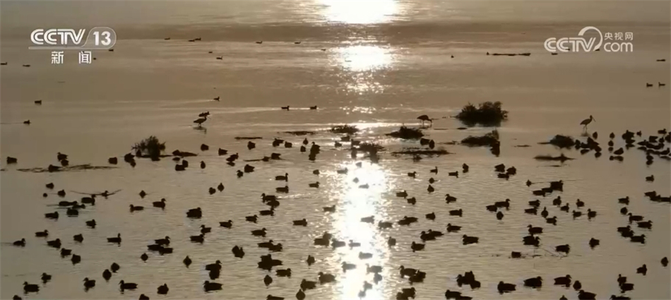 眼下正是候鸟南迁的季节,在内蒙古鄂尔多斯市黄河流经沿岸,聚集了大批南迁候鸟,其中有天鹅、苍鹭、赤麻鸭、绿头鸭等10多个种类,它们或是在水中和岸上悠然地休憩,或是聚精会神地饱餐一顿,或是振翅在空中翱翔。在落日余晖的映衬下,一派和谐灵动的生态画卷跃然眼前。