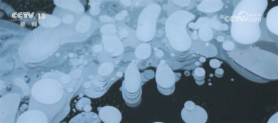 据了解,“冰泡”形成的主要原因是湖中茂盛的水草在衰败腐烂之后释放出沼气。冬季,在气源充足的情况下,当气温从0℃跌落至零下20℃后,一个个上升的气泡还来不及“跑”出湖面,便被冰封在湖水之中。