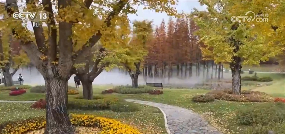 眼下,江苏南京的银杏湖进入了一年中最美的时节。金黄的银杏、鲜红的枫叶以及紫叶李等多种彩叶和碧绿的湖水相互交织。在林间,不少游客走走停停,随手一拍便是一幅油画。